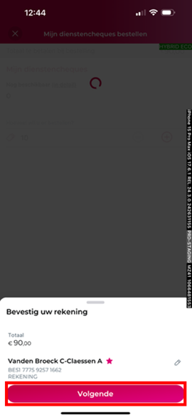 - Voer de betaling uit. De dienstencheques worden aan uw elektronische portefeuille toegevoegd en u ontvangt een bevestiging via mail.
