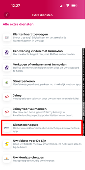 - Koppel uw dienstencheques-account in de Belfius Mobile App.