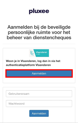 - In het volgende scherm ‘Aanmelden bij de beveiligde persoonlijke ruimte voor het beheer van dienstencheques’, klikt u op de knop ‘Aanmelden’.