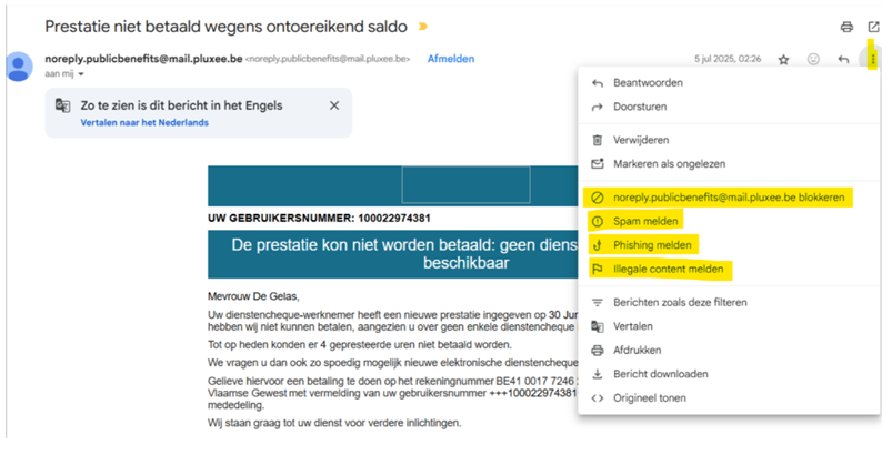 Als u één van onze e-mails als ongewenst of spam markeert, kan uw adres automatisch worden uitgeschreven of door het systeem worden geblokkeerd.